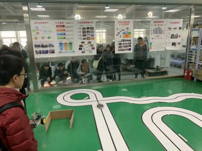 比赛分四个项目,“智能寻迹组”、“无碳组”、“智能创新组”和“工程制图组”。“智能寻迹组”的比赛内容是参赛者自行设计机器人小车按照规定赛道自主寻迹完成比赛,在此基础上所用时间最短者胜出。比赛中,综合考察了学生对于电路设计、传感器、程序设计和自动控制等课程的理解与实践能力。“无碳组”的比赛内容是设计一款没有电源、线路板等电子元器件的纯机械小车、所有动力来自于重力势能的转化,最终比拼的是产品各个环节的传动效率和加工装配的精度。根据比赛要求,产品所有零部件均为学生自行设计,加工与装配均在工程训练中心完成,让学生真正体验了设计、绘图、加工、装配、调试等不同的工程环节,有助于工程能力的培养。“智能创新组”要求学生自主设计机器人,完成启停、执行动作、避障等功能,综合考察了学生编程、控制、机械设计等技能的实践能力,并引导学生关注先进的机器人科技。“工程制图组”根据机械方向和土木方向的不同需求分别命题,考察学生的工程制图基本能力。经过激烈的角逐,本次大赛共产生了一等奖5项,二等奖7项,三等奖12项。
