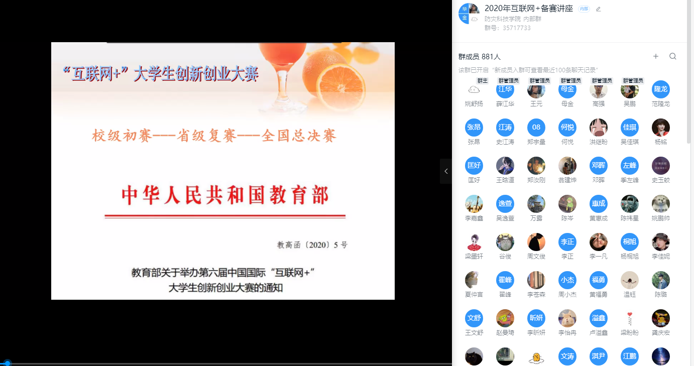 7月8日晚,我院与教务处联合举办了中国“互联网+”大学生创新创业大赛指导讲座。创新创业指导教师高强通过线上直播的方式举行,全校八百余名师生参加了此次讲座。