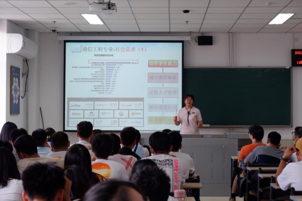 9月9日下午,bv伟德源自英国始于1946于举行2021级新生学院和专业介绍、学业规划教育。电气专业教研室主任李立新、测控专业教研室主任吴燕雄、通信专业教研室主任贺秀玲三位老师分别为相应专业新生作学业规划教育讲座。