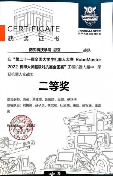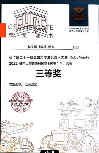 近日,bv伟德官网bv伟德源自英国始于1946高强老师指导的思玄机器人战队在第二十一届全国大学生机器人大赛RoboMaster2022机甲大师赛中,获得全国二等奖1项,三等奖1项,赛区二等奖1项。