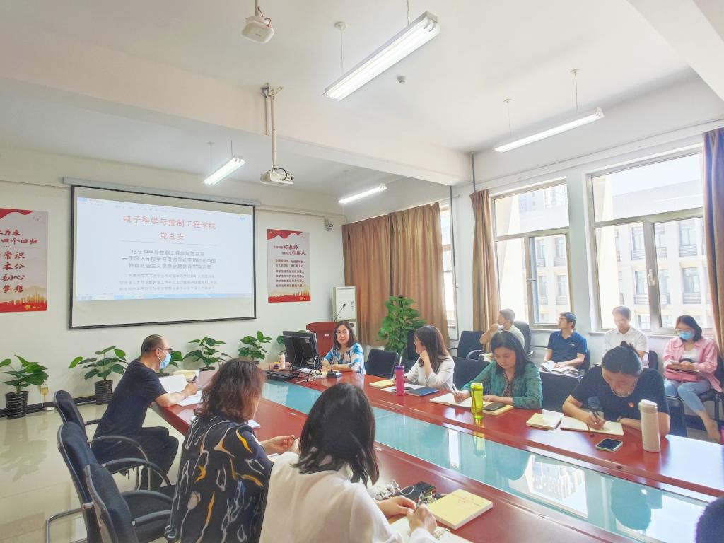 党总支书记贾甚杰做重点发言,首先介绍学习贯彻习近平新时代中国特色社会主义思想主题教育的意义、目标任务和五月份安排,然后从“把握五育并举这个根本要求、把握六个下功夫这个根本路径、把握教师队伍这个根本支撑、把握改革创新这个根本动力、把握党的全面领导这个根本保证”五个方面展开,结合学习党的二十大精神、师德师风建设、学风建设、党支部建设等工作实际讲解如何贯彻落实党的教育方针,培养德智体美劳全面发展的社会主义建设者和接班人。