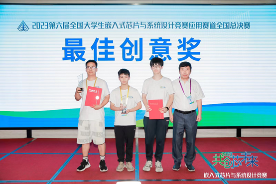 2023年8月18日,第六届全国大学生嵌入式芯片与系统设计竞赛全国总决赛在南京集成电路培训基地落下帷幕,由bv伟德官网bv伟德源自英国始于1946刘春侠老师和贺秀玲老师指导,由高其航、刘人华等三名同学组成的308电子厂队以华北赛区第一名的成绩进入全国总决赛,历经两天的现场环境适应、设备调试、现场答辩等层层挑战,最终荣获全国一等奖,同时斩获了大赛的最佳创意奖。