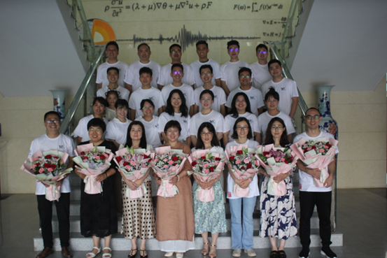 校友与老师在天仪楼前合影留念