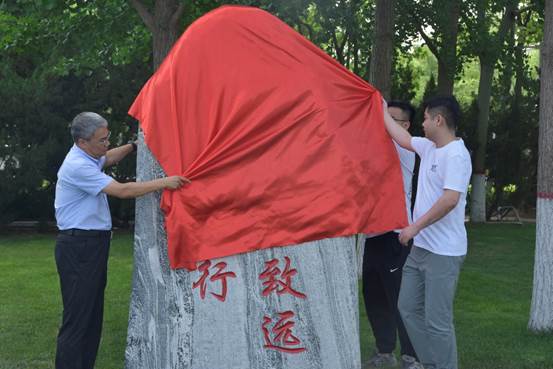 任云生校长与校友拱兴乾、穆如旺共同为景观石揭幕