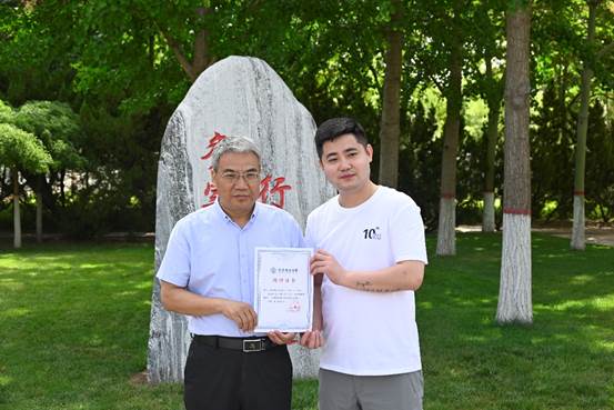 任云生与校友代表拱兴乾、穆如旺共同为捐赠的景观石揭幕,并向校友颁发捐赠证书和校友联络员聘书。校友代表拱兴乾发言,他重温了十年前在校学习生活的美好时光、师生相处的浓厚情谊,对母校的培养表示感谢,并表示将一如既往地关注和支持母校的发展建设,为母校的发展做出更多贡献。