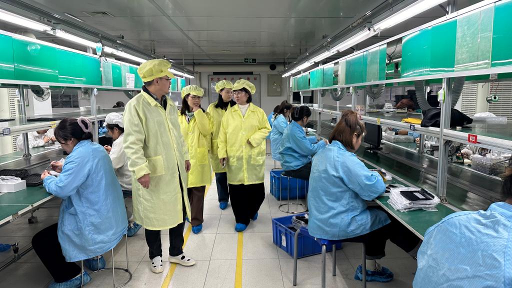 贾甚杰、蔡建羡一行依次参观了汉王公司的SMT车间和组装车间,并在之后进行了座谈交流。余风胜对学院一行的到访表示了热烈的欢迎,他全面介绍了公司的发展历程、核心技术及其产品应用、行业地位、企业影响力以及企业文化等方面的情况。同时,余风胜对双方近五年来在电子技术综合实践领域开展的校企合作表达了诚挚的感谢,并表达了进一步深化合作的强烈意愿,希望通过整合企业与学校的平台资源,共同实现互利共赢的发展目标。
