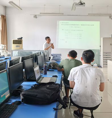 办公室隔壁的实验室里,王新刚老师在给两个学生讲课,声音洪亮、激情四射。王老师说:“学生学习有困难,找到我,我答应给学生补课辅导,只有两个人也要认真讲好。”王老师一直用优秀共产党员的言和行践行着“为党育人,为国育才”的初心使命,热爱学生热爱教学是他最本真的内心和最朴实的行动。