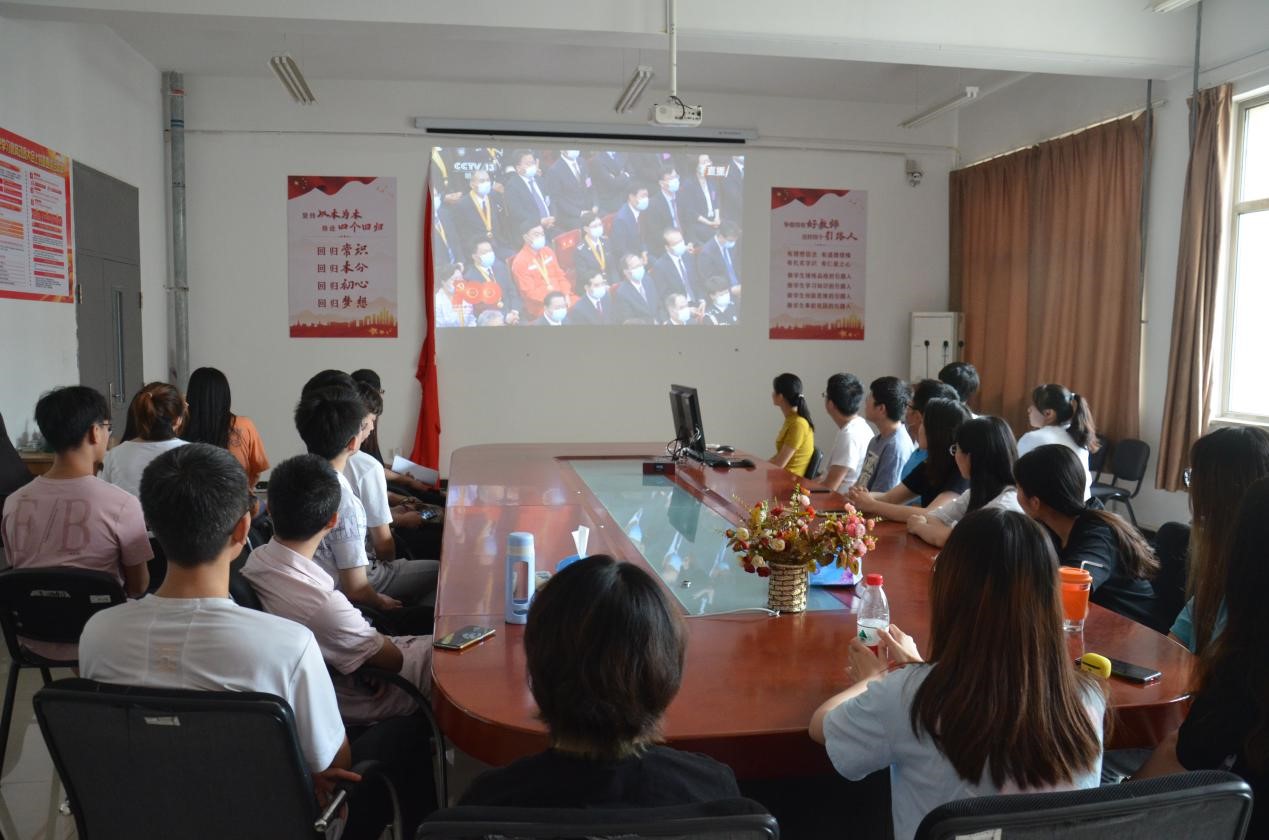 2021年6月29日上午10时,“庆祝中国共产党成立100周年‘七一勋章’颁授仪式”在人民大会堂隆重举行。中共中央总书记、国家主席、中央军委主席习近平首次颁授“七一勋章”并发表重要讲话。bv伟德源自英国始于1946党总支组织学院师生党员在长庚楼420会议室集中收看了直播。
