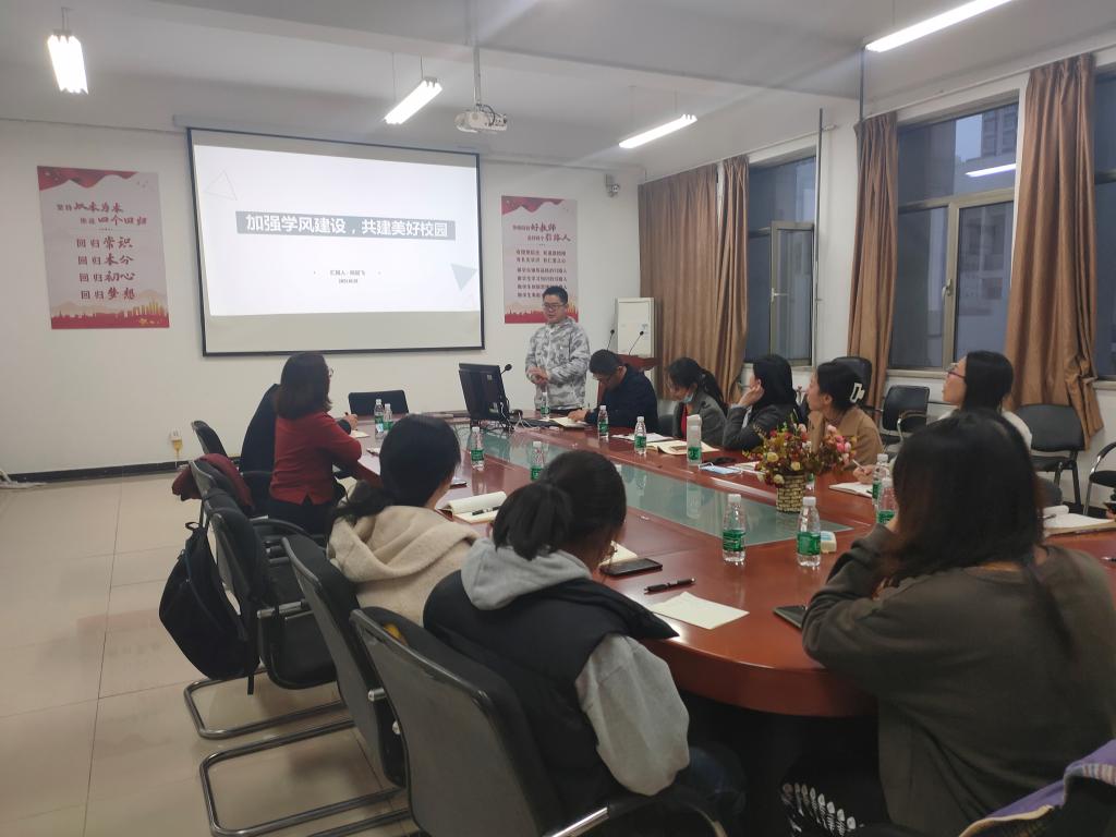 活动最后,学院党总支书记贾甚杰做总结,她指出教风和学风是学院整体风气和形象的重要体现,是一个需要长期建设的重要内容,全体党员务必要谦虚谨慎,以身作则,发挥好模范带头作用,树立标杆和品牌意识,积极为优良教风学风建设做出贡献。