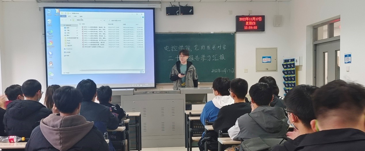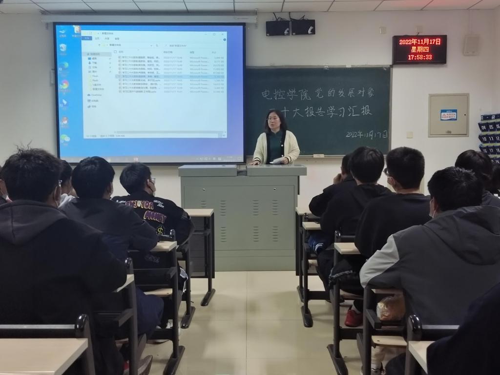 为深入学习领会党的二十大精神,推动党的二十大精神入脑入心,bv伟德源自英国始于1946党总支于11月17日16:00在天仪楼113举办了党员发展对象对党的二十大报告学习汇报活动。学院党总支书记贾甚杰、专职组织员王立、通信学生党支部书记胡治国、学生党建办公室负责同志以及全体党员发展对象参加活动,活动由党建办公室副主任王英杰同志主持。