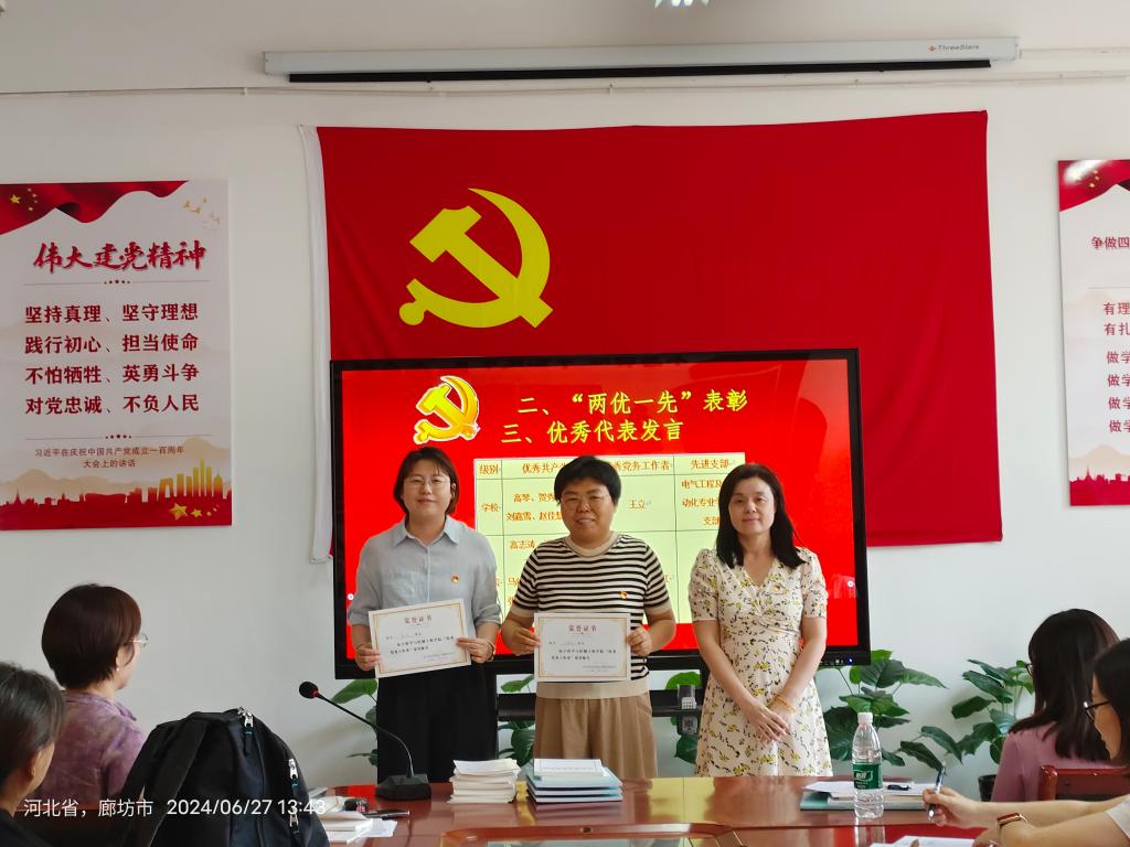会上,全体党员庄严宣誓,重温入党誓词;表彰一年来在理论学习、教学与学生工作、科研及社会服务、师德师风等方面表现出色的优秀共产党员、优秀党务工作者以及先进党支部,并邀请高琴、贺秀玲、李玲、谢维、段丽、王佳慧、王立、于瑞红等优秀代表发表感言、分享心得,几位同志纷纷表示将进一步加强学习,认真按照学院党总支要求,扎扎实实完成各项工作,为学生成长、学院建设及大学筹建贡献自己的力量。