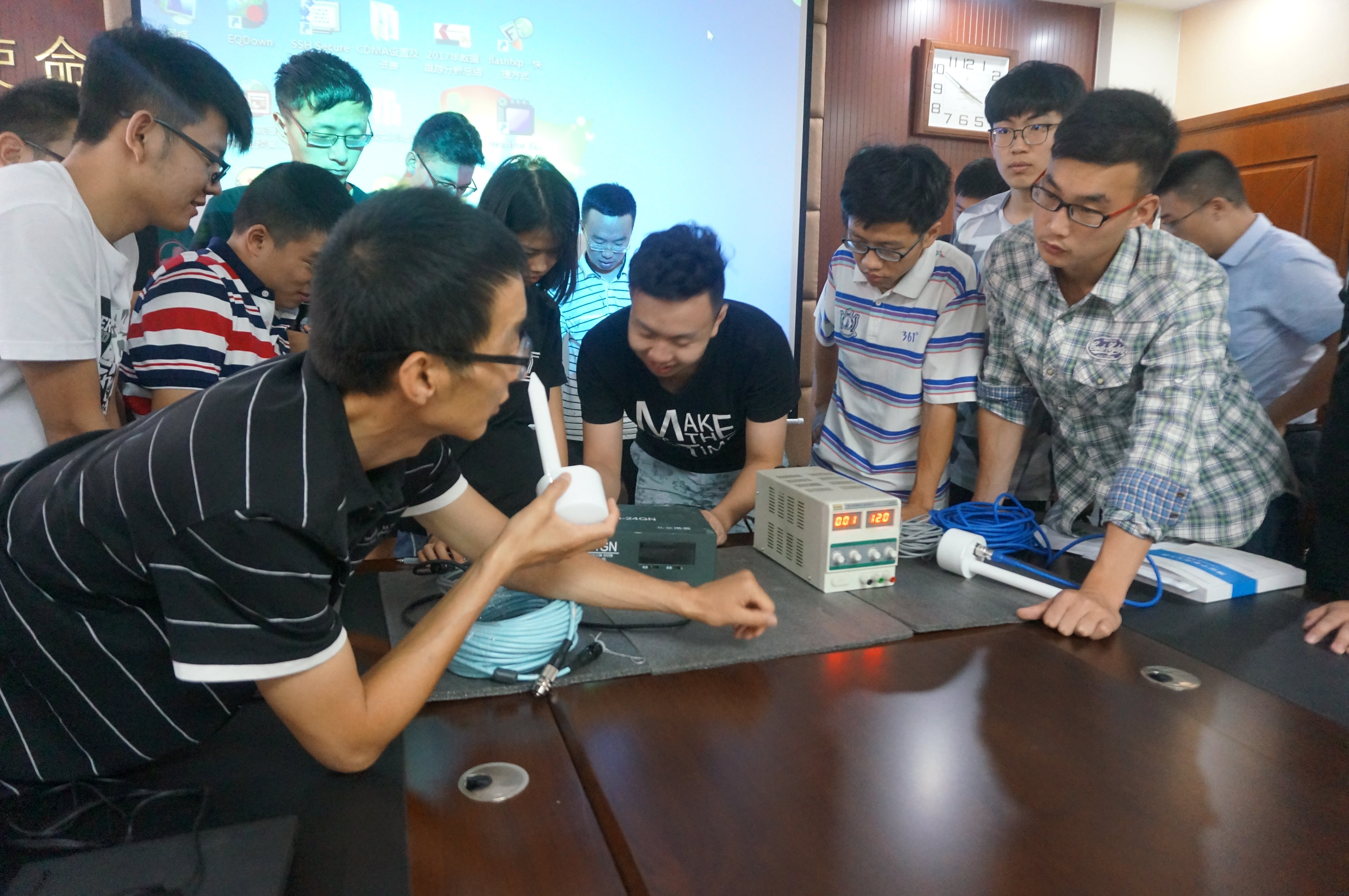 地震仪器协同实验班的建立,目的在于培养具有地震仪器维护、维修能力的专业人才,因此实习内容中,有一项针对仪器维修工作的互动,同学们在各位工程师的指导下,进行了上手操作,充分的将理论与实际相结合,极大的激发了同学们的学习热情。在最后的结业仪式上,同学们将实习过程中遇到的问题进行了整理并设计解决了问题,以PPT的形式向自治区地震局的领导、专家进行了汇报,获得了大家的赞许。
