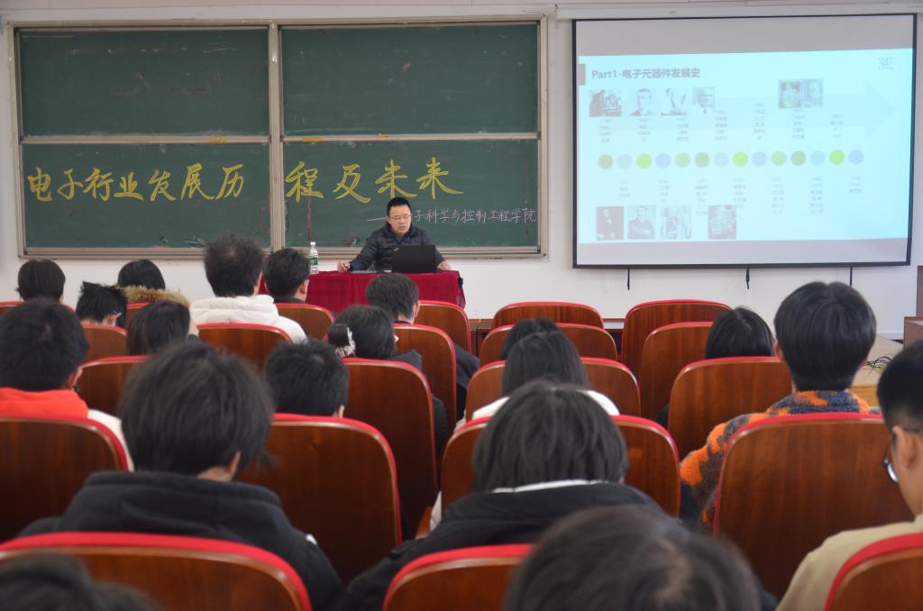 12月5日,受bv伟德源自英国始于1946邀请,汉王制造有限公司SMT经理、高级工程师余风胜来校作题为“电子行业发展历程及未来”的学术报告,共有300余名师生到场聆听。