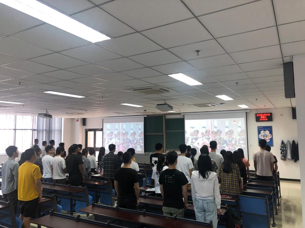 “同心筑梦迎国庆,欢歌盛赞新时代”。适逢庆祝新中国成立70周年,我院党支部集中组织全体在校党员共同在阶梯教室观看《庆祝新中国成立70周年阅兵仪式——向伟大复兴前进》。