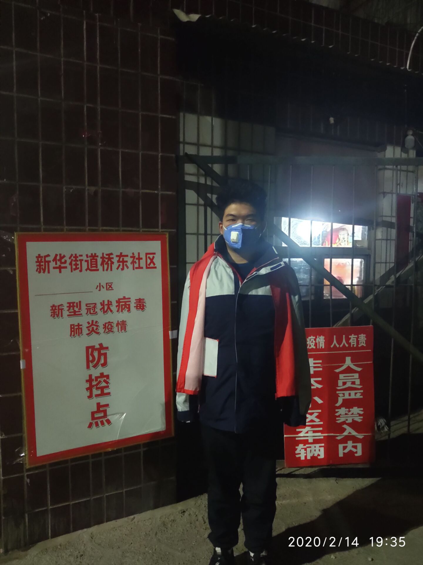 在疫情暴发以后,190525班李欣泽同学时刻关注着疫情的变化,他看到无数的白衣天使奋斗在各自的岗位上,他被他们大无畏的奉献精神而感动。在无意中看到了有和他一般大的人在做志愿者,便参与其中。他的工作是:做好在疫情期间保障小区居民的安全,时时刻刻关注进入本小区的车辆与人员。他努力去守好这道防线。他说:“作为新时代大学生,我应该为社区、为社会、为国家多做一些贡献,我相信有全国人民对武汉的帮助,武汉必定会战胜疫情。”
