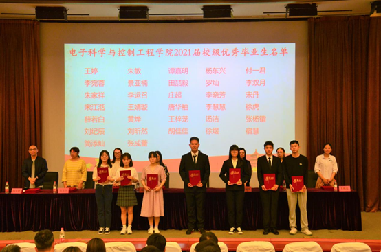 大会第一项内容:表彰优秀毕业生。首先,主持人阎光耀老师宣布2021届毕业生表彰大会开始,接着蔡建羡老师宣读了《bv伟德源自英国始于1946对于2021届优秀毕业生的决定》及获奖名单。各位老师分别向获得省级优秀毕业生、校级优秀毕业生以及院级优秀毕业生的优秀学生们颁发获奖证书并拍照留念。随后由贺秀玲老师作为教师代表表达了对毕业生的期望与祝福。最后贾甚杰老师总结发言,并向毕业生们送上美好的祝福。