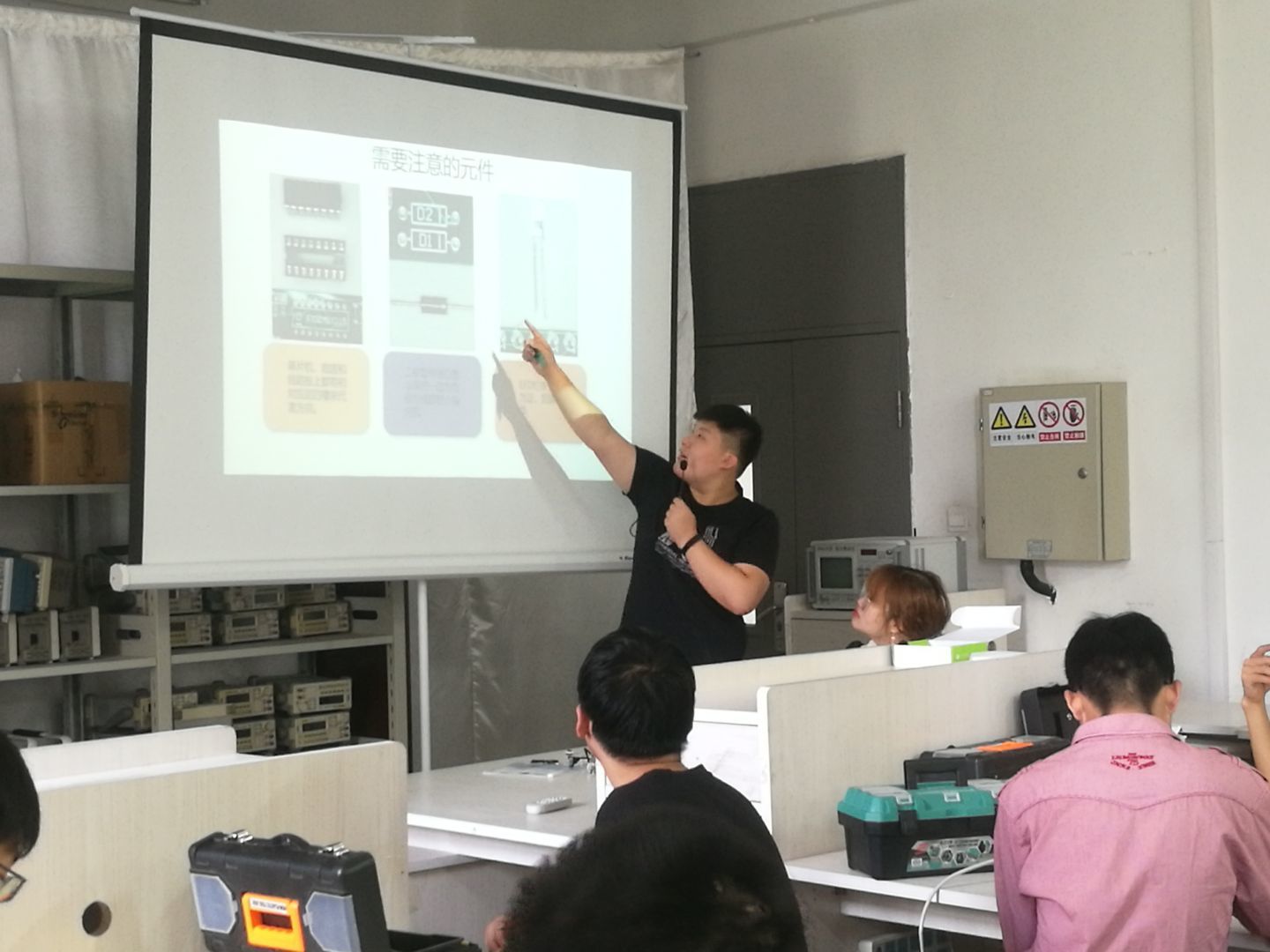 活动开始,由机器人协会的干事先进行播放提前录制的焊接视频,之后以PPT的形式对基础焊接要点以及元器件展开介绍,并对焊接安全注意事项进行讲解,让外院初步接触焊接的同学们更深刻的了解焊接技术,对焊接知识有更进一步的认识。