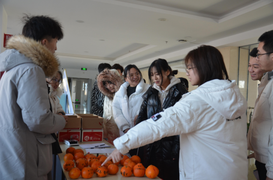 本次活动于中午12点准时开始,参与志愿者身穿蓝色马甲,指引到场的学长学姐们首先挑选祝福橙子,每个橙子上面都写满了考神、必过、上岸、加油等祝福语以及可爱暖心的表情。(图二、三)