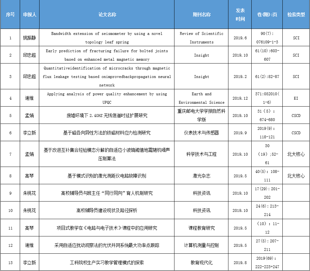 电控学院2019年度公开发表期刊论文统计
